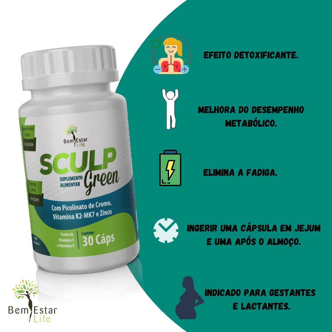 Desenvolvido para eliminar toxinas, o sculp green reúne os principais nutrientes envolvidos nesse processo de destoxicação, como a vitamina C, fosfatidilcolina, magnésio, zinco e cromo para fortalecer o sistema de destoxificação presente em nosso organismo.