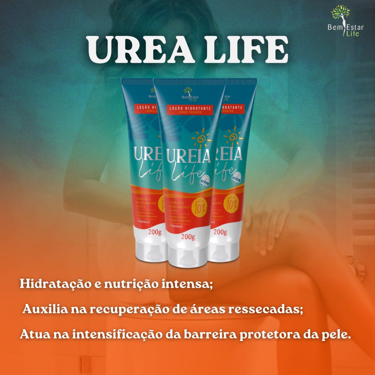 ? O Urea Life da Bem Estar Life agora conta com uma nova fórmula enriquecida com vitamina E, castanha do Para, manteiga de murumuru e um aroma renovado, proporcionando a hidratação necessária para que sua pele fique com um aspecto saudável e extremamente macia.